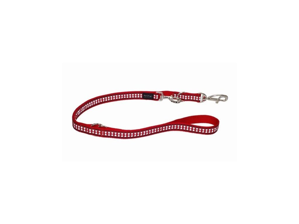 Přepínací vodítko Red Dingo. Délka je nastavitelná pomocí dvou karabin v rozmezí 1,0 – 2,0 m. Šířka popruhu 25 mm. Vodítka Red Dingo jsou vyrobené z kvalitního nylonového popruhu. Okraje jsou hustě tkané pro ještě větší odolnost vůči oděru. Našitá reflexní stuha velmi dobře odráží pouliční světlo, světla aut, cyklistů apod. Při dopadu světla na vodítko dochází k jeho výraznému odrazu od reflexních ploch – kostiček. Reflexní řada výrobků Red Dingo výrazně přispívá k bezpečnosti Vašich čtyřnohých kamarádů během Vašich procházek nejen za šera a tmy. S reflexními výrobky Red Dingo budete originální a budete vidět! Přepínací vodítka mají dvě karabiny a s jejich pomocí lze délku snadno nastavovat podle potřeby. Karabiny Red Dingo patří mezi jedny z nejpevnějších na trhu a díky unikátnímu výměnnému systému je možné jednu z karabin snadno vyměnit. Vodítko je vybaveno jednou standardní karabinou a jednou výměnnou klasickou karabinou Red Dingo. Ostatní karabiny ve tvaru psa je možné dokoupit samostatně. Více najdete v kategorii Karabiny. Kroužky jsou vyrobené z velmi kvalitní karbonové oceli. Zakončení popruhu je pod úhlem 20 stupňů tak, že jsou všechny spoje velice hladké.Doplňkové parametry
