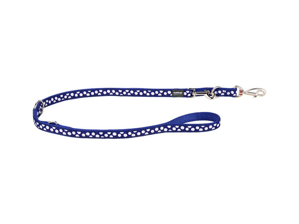 Red Dingo vodítko přepínací – White Spots on Navy – 25 mm x 2 m