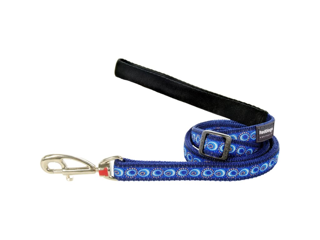 Klasické vodítko Red Dingo pro psy. Délku je možné jednoduše nastavovat pomocí jezdce v rozmezí 1,0 – 1,8 m. Šířka popruhu 12 mm. Vodítka mají v oblasti držení velice jemný polstrovaný nylon, který zaručuje maximální pohodlí i pro majitele temperamentnějších psů. Vodítka Red Dingo jsou vyrobené z kvalitního nylonového popruhu. Okraje jsou hustě tkané pro ještě větší odolnost vůči oděru. Našitá stuha se vzorem je utkaná speciální technikou, která zaručuje vysokou odolnost a trvanlivost. Použitá příze zajišťuje skutečnou stálost barev. Karabiny Red Dingo patří mezi jedny z nejpevnějších na trhu a díky unikátnímu výměnnému systému je možné karabinu snadno vyměnit. Vodítko je standardně vybaveno klasickou karabinou Red Dingo. Ostatní karabiny ve tvaru psa je možné dokoupit samostatně. Více najdete v kategorii Karabiny. Zakončení popruhu je pod úhlem 20 stupňů tak, že jsou všechny spoje velice hladké.Doplňkové parametry