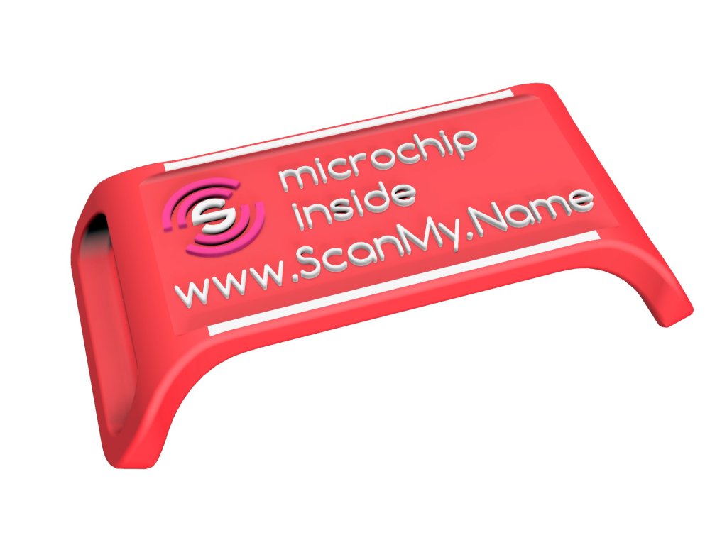 ScanMy.Name chytrá psí známka s čipem - ČervenáNaskenuj mé jméno!Název identifikační známky jasně vybízí k akci! ScanMy.Name. Tedy Naskenuj mé jméno. Identifikace nalezeného zvířete už nemůže být snadnější a rychlejší!