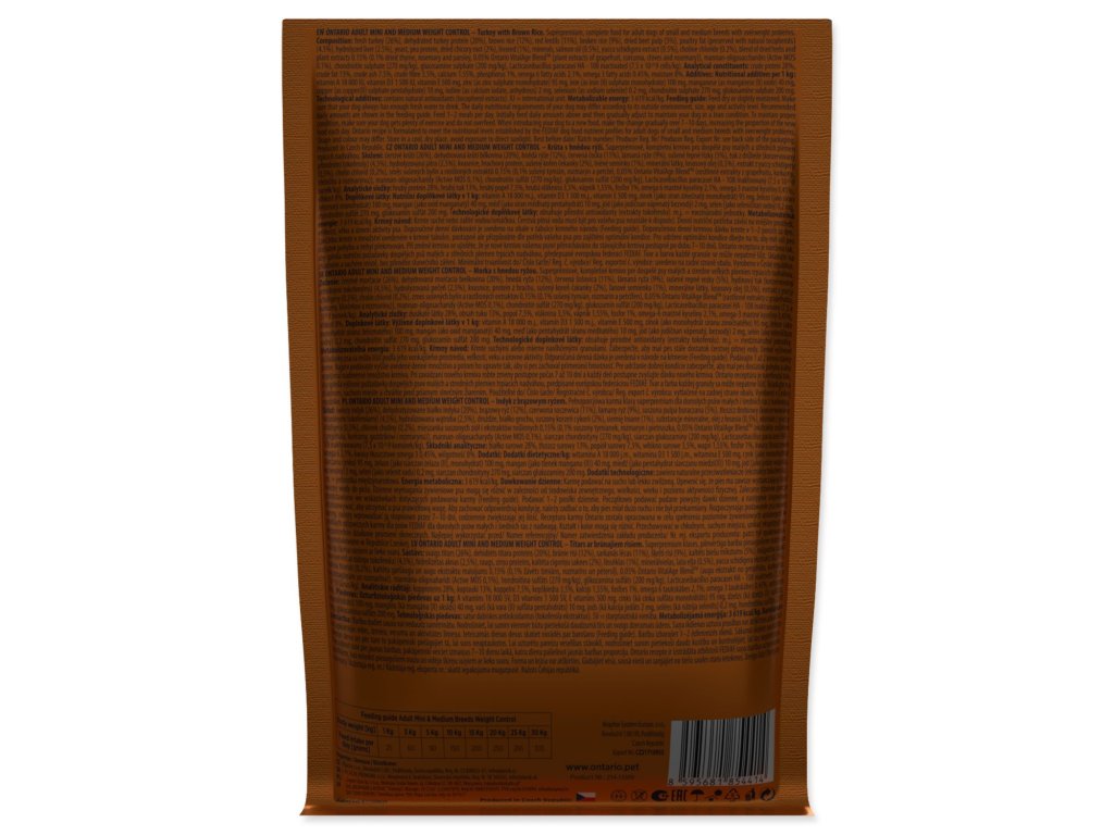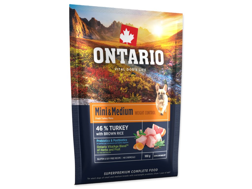 Vzorek Ontario Mini & Medium Weight Control Turkey & Brown Rice 0,1kg