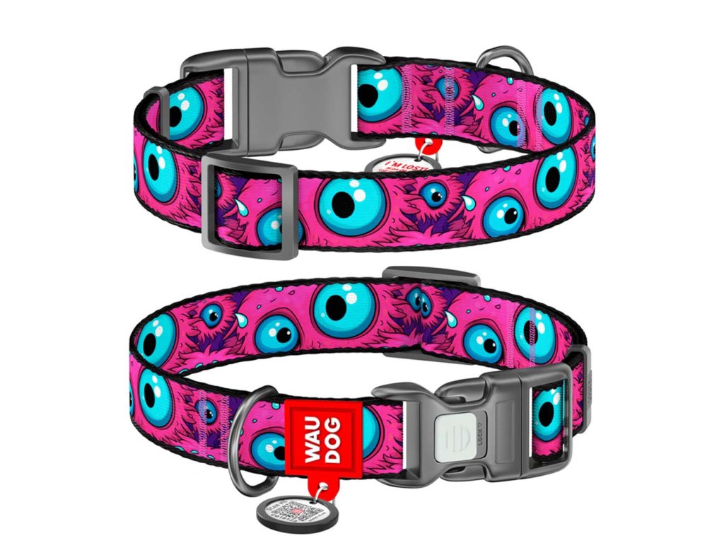 Modré oči růžové příšerky zírají z tvého nového obojku. Věř, že tohle nikdo nepřehlédne! V sadě s vodítkem plným modrých kukadel budeš vynikat, ať jsi psí holka nebo kluk. Páníčka bude navíc bavit spona se svítícím zámkem a chytrá QR známka zdarma!Pevný a kvalitní nylonový materiál, který vydrží drbání za uchem, vodní radovánky vašeho pejska a tahání na vodítku. Materiál se snadno čistí. Díky speciální technologii potisku vydrží barvy obojku dlouho stejně výrazné.