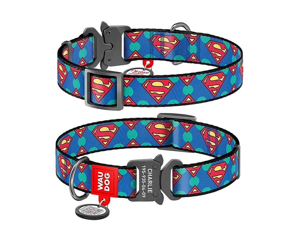 Máš uši jako radar a oči zrengenují každého kdo vstoupí na tvé území... něco ti to připomíná? Jsi jako Superman, tak to podtrhni i stylovým obojkem s logem tvého "kolegy". Kdyby ses někdy náhodou při cestě domů zatoulal a cesta zpět byla složitější, tak tvá chytrá QR známka ti pomůže. Známku máš k obojku zdarma.Krásný pevný nylonový obojek na modrém základu s logem Supermana. Tak to dej všem najevo, že jsi vyjímečný.