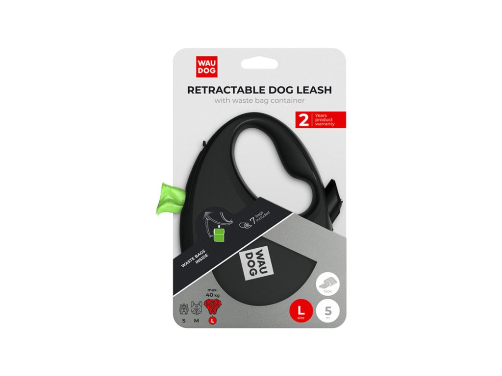 WAUDOG vodítko samonavíjecí se zásobníkem na sáčky Černé 40kg/5m/L