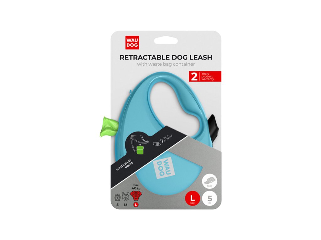 WAUDOG vodítko samonavíjecí se zásobníkem na sáčky Modré 40kg/5m/L