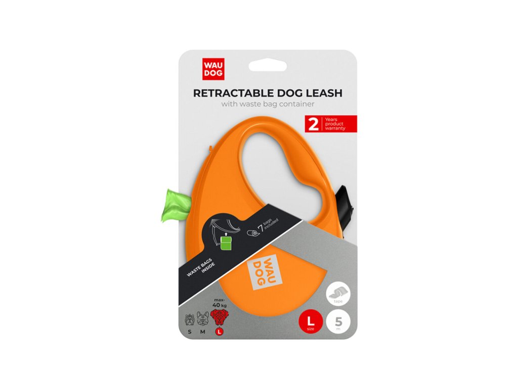 WAUDOG vodítko samonavíjecí se zásobníkem na sáčky Oranžové 40kg/5m/L