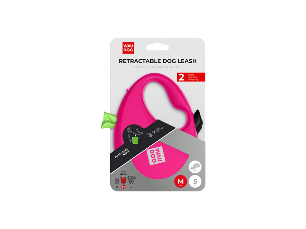 WAUDOG vodítko samonavíjecí se zásobníkem na sáčky Růžové 20kg/5m/M