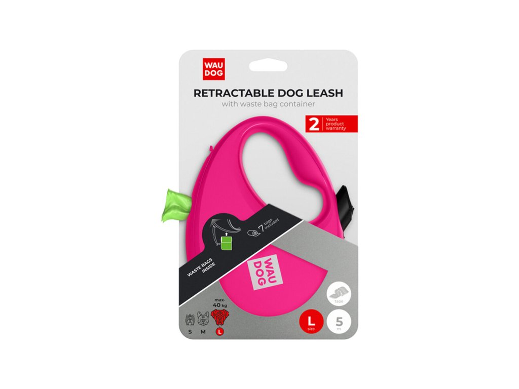 WAUDOG vodítko samonavíjecí se zásobníkem na sáčky Růžové 40kg/5m/L