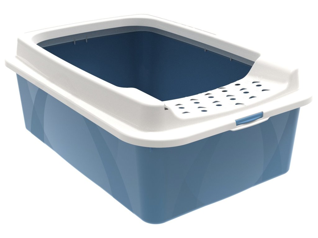 GIMCAT Bea WC s okrajemKočičí toaleta Bea je otevřená toaleta s okrajem pro kočky vyrobená z vysoce kvalitního recyklovaného plastu. Jedná se o jednoduchý výrobek šetrný k životnímu prostředí. Perforovaná deska rámu zajišťuje čistotu tlapek a díky kapacitě 30 litrů a vysoké výšce zabraňuje tato toaleta vynášení steliva.