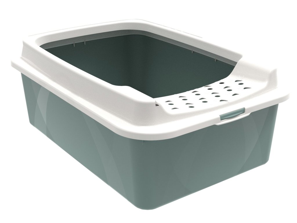GIMCAT Bea WC s okrajemKočičí toaleta Bea je otevřená toaleta s okrajem pro kočky vyrobená z vysoce kvalitního recyklovaného plastu. Jedná se o jednoduchý výrobek šetrný k životnímu prostředí. Perforovaná deska rámu zajišťuje čistotu tlapek a díky kapacitě 30 litrů a vysoké výšce zabraňuje tato toaleta vynášení steliva.