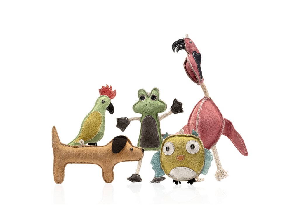 Wooffee krab je vyroben z kombinace přírodních materiálů, které jsou šetrné k zubům a dásním psa a odolávají opakovanému kousání. Tělo je z buvolí kůže s výplní z kokosových vláken a je prošito nití. Nohy jsou z jutového provazu s příměsí bavlny, který je ideální pro kousání i přetahování. Ke hře s ním psa zláká i vůně kůže, která připomíná pach kořisti a vyvolává přirozenou touhu kousat, žvýkat a lovit. Tato hračka je perfektní i pro štěňata, která právě procházejí obdobím přezubování – může pomoci od podráždění dásní, aniž by jakkoliv poškodila křehké zoubky, a umožňuje štěňátkům vybít si jejich přirozenou potřebu kousat na bezpečné hračce, namísto vašich bot nebo nábytku. 100% přírodní hračka s provazem z juty a bavlny vhodná ke žvýkání, přetahování a aportování vyrobena z buvolí kůže s výplní z kokosových vláken přirozená vůně kůže láká ke hře a probouzí lovecké instinkty psa odolná a zároveň šetrná i ke štěněčím zoubkům Na výrobu hraček byla použita kvalitní kůže z buvola, která je jemná a zároveň odolná. Po její úpravě a obarvení byla podrobena testu podle evropské směrnice REACH, která garantuje zdravotní nezávadnost a bezpečnost použitého materiálu. Hračky Wooffee nabízíme v široké škále tvarů, barev a velikostí. Rozmanité detaily na hračkách nejsou jen pro parádu – každý prvek má svůj praktický význam. Uši, ocásky, choboty a výstupky pomáhají psům snadno a zábavně hračku přenášet a žvýkat z různých stran. Některé hračky mají přírodní kokosovou výplň, jiné jsou naopak bez výplně, další mají jutový provaz a některá zvířátka mají z provazu spletené celé tělo – vybere si opravdu každý pes i páníček! Velikost 25 cmDoplňkové parametry