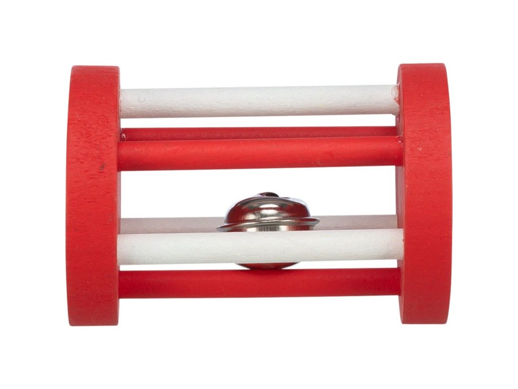 Xmas Roll - dřevěný váleček s rolničkou pro hlodavce, ø 5 × 7 cm, červená/bílá