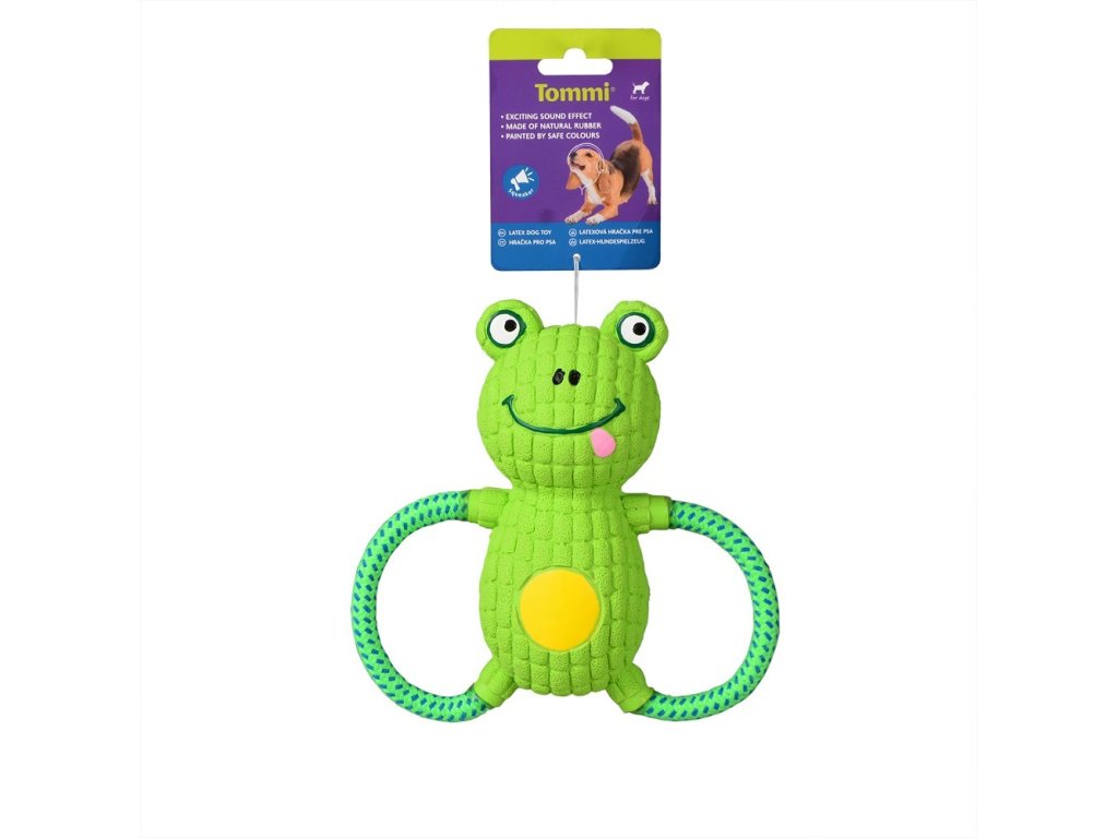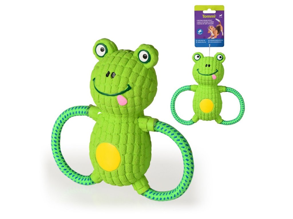 Pískací hračka pro psy – žába s provazem