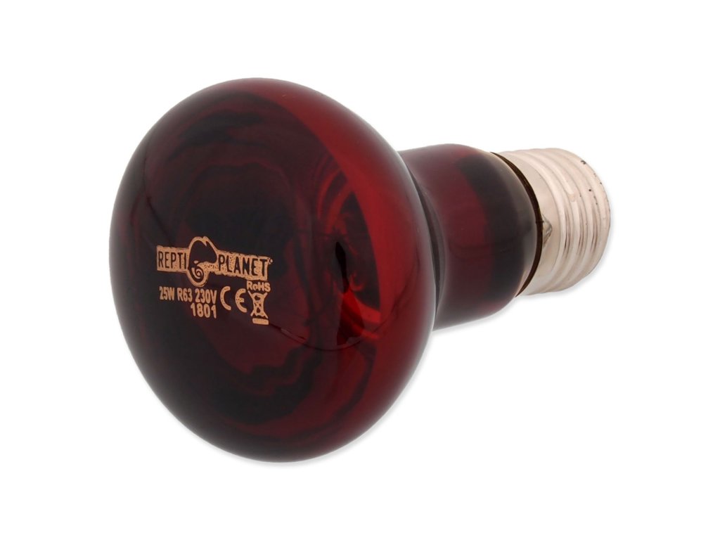 Žárovka REPTI PLANET Infrared Heat vytváří infračervené tepelné záření a je ideální v kombinaci se světelnými a UVB žárovkami (např. Repti Planet Daylight Basking Spot, Daylight Frosted, Daylight Neodymium, Repti UVB) nebo LED osvětlením. Zbarvení je dosaženo prostřednictvím červené barvy skla.
