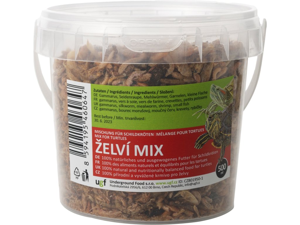 Želví mix 500 mlKrmivo určené pro vodní i suchozemské želvy, které je 100% přírodní a skládá se z kombinace vodních živočichů a sušeného hmyzu. Jedná o pestrý a vyvážený mix, který obsahuje vysoké množství proteinů, vitaminů a minerálních látek. Důležitým prvkem je vápník, který podporuje přirozený růst krunýře a kostí. Skvělá pochoutka pro vaši želvu, která ji poskytne vše, co potřebuje.