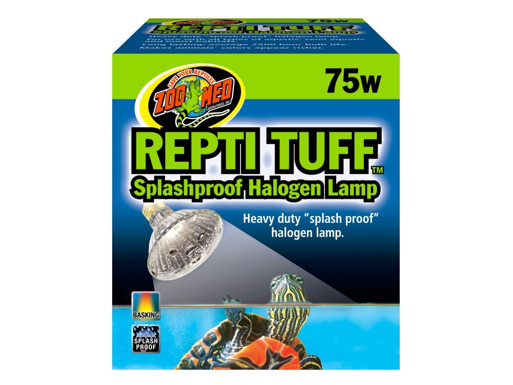Zoomed halogenové světlo Turtle TuffKvalitní halogenová bodová žárovka ReptiEye s vysokou svítivostí a životností, vhodná pro vytvoření výhřevných míst. Poskytuje přirozené teplo pro plazy a obojživelníky, podporuje trávení a aktivitu. Díky tvrzenému sklu se žárovka pyšní vysoké odolnosti a životností. Vysoce odolná halogenová žárovka určená do terárií s vodní plochou, například pro vodní želvy a další. Světlo je odolné proti stříkající vodě a má dlouhou životnost.