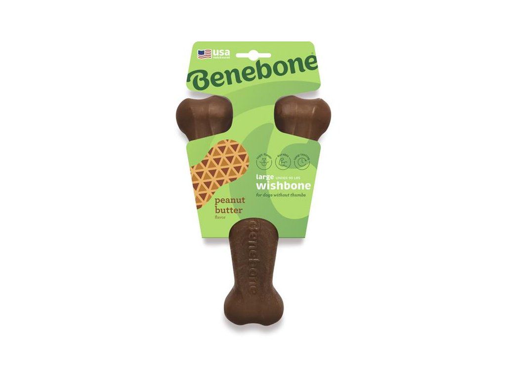 Žvýkací hračka pro psy Benebone Wishbone arašídové máslo, vel. L, 21,1 × 14 cm