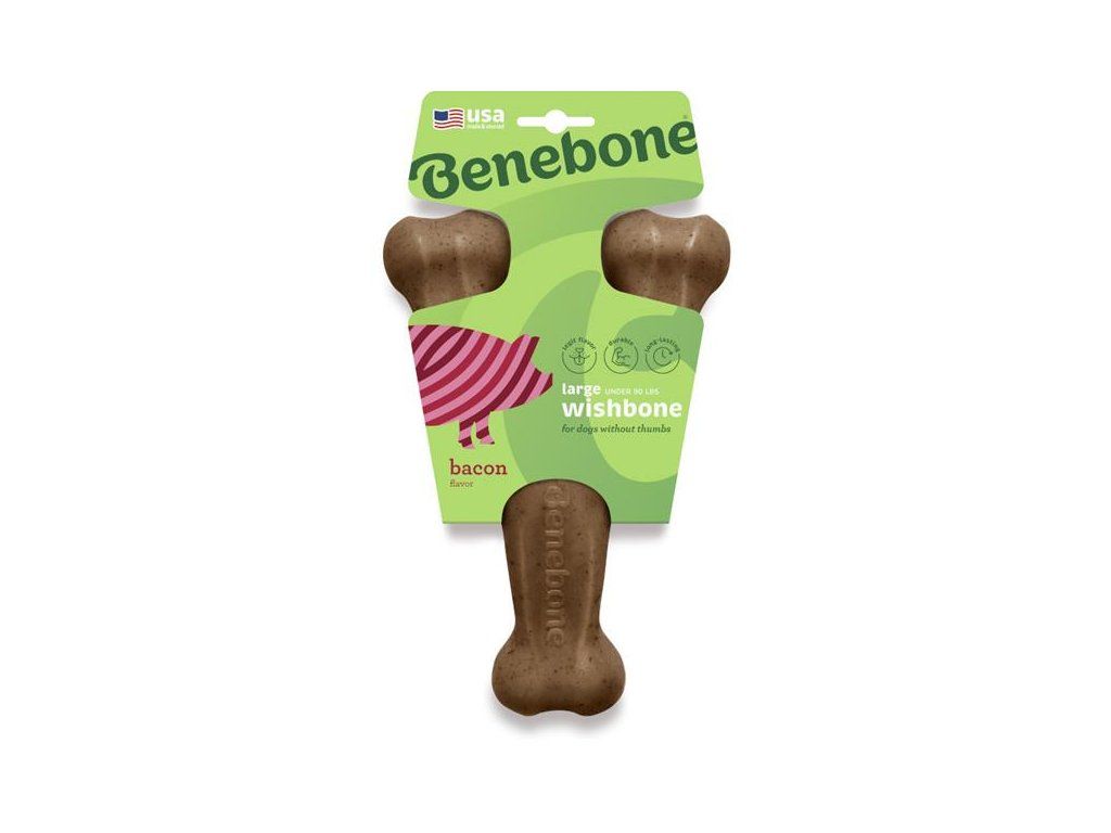 Žvýkací hračka pro psy Benebone Wishbone slanina, vel. L, 21,1 × 14 cm